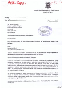 According to him, as an identifiable individual and stakeholder, I personally submitted a strong protest letter to Senate President Godswill Akpabio on December 1, & 2 2025, at the National Assembly, detailing why Mr. Omokri is unfit for diplomatic service due to his past conduct and threats to Nigeria’s international reputation.