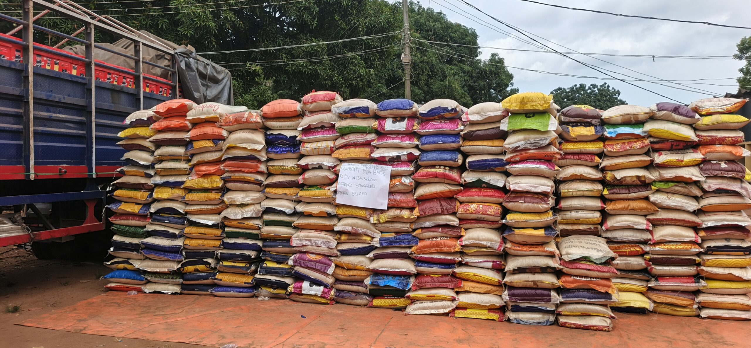 Further exposing the scale of illicit trade, the Command intercepted a Sino truck conveying 4,325 cartons of foreign spaghetti. Additional seizures include 1,204 bags of foreign parboiled rice, 545 kegs of Premium Motor Spirit, sugar, used tyres, second-hand clothing, and other contraband items.
